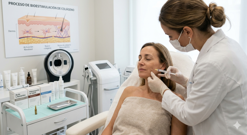 Si nunca has escuchado del tema, puede sonar un poco técnico. Básicamente, los bioestimuladores son sustancias que se inyectan en la piel para “activar” la producción de colágeno. Esto no es magia; tu piel ya tiene la capacidad de regenerarse, pero con los años ese proceso se vuelve más lento.